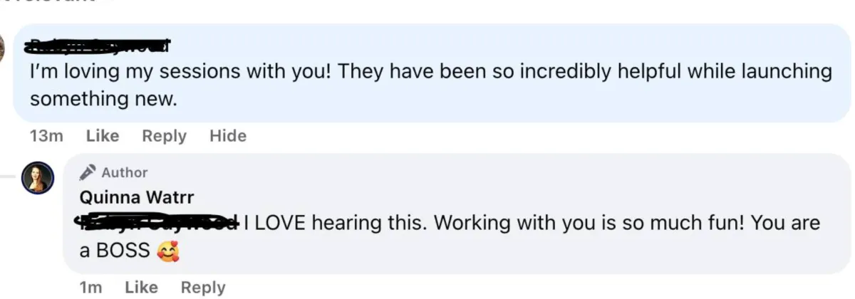 "The exercises were really impactful + eye-opening about why I am sabotaging my own success. Quinna is a very engaging and passionate speaker and I'm so glad that I signed up."